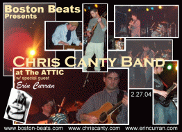As part of our continuing effort to promote great local music, Boston Beats has initiated the ongoing "Boston Beats Presents" concert series featuring local artists.  If you want to see great live local music,  join us at our next show.  It's always a good time.  If you're associated with a venue or an artist and are interested in learning more about Boston Beats Presents, please email us at bbpresents@bostonbeats.com.